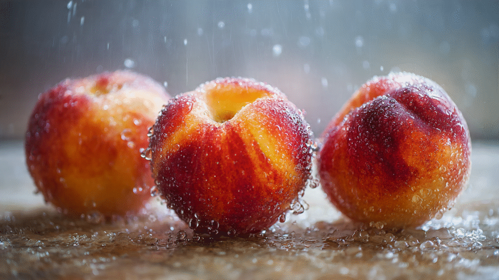 The easiest way is blanching: dip peaches in boiling water for 30–60 seconds, then plunge into ice water. Skins slip off easily, as shown in The Kitchn’s guide.